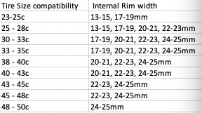 Road Bike Rim Width to Tire Size Chart