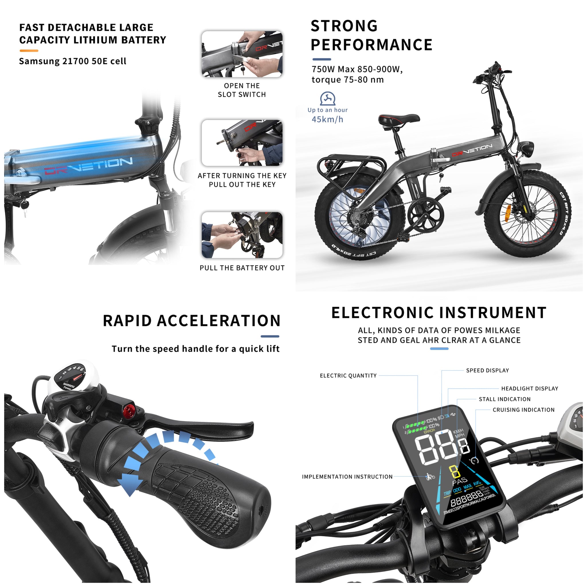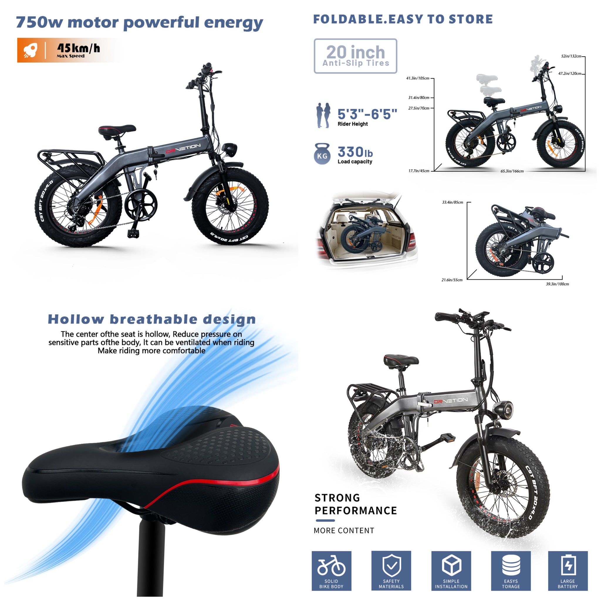 48V750W 20" Fat tire Folding MTB electric bike with 10AH Samsung 21700 50E battery definitely is best e bikes under 1000. LED front light for safe driving, anti-slip tire, hydraulic front & rear disc brake, front shock absorption. Mileage of pure electric: 25-35km, Mileage of Assistance: 40-60. Ship from EU warehouse.
